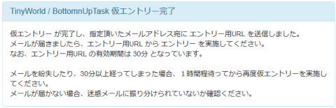 メール通知されるエントリーURLの有効期限は30分なので、有効期限内にエントリーURLにアクセスしてください。
